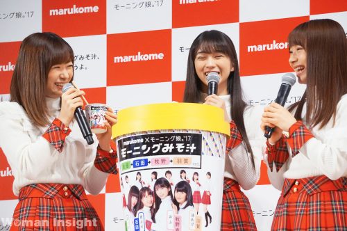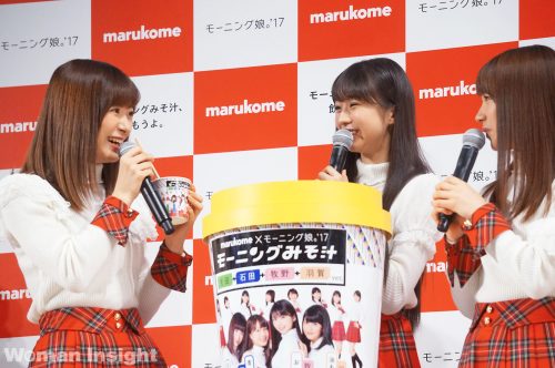 尾形「私はメンバーで“薄くて軽い”担当なので、今回のとろろ昆布はうれしいです。でも、メンバー一の美白と言われているので、もう1回あるならとうふがいいです! とうふはみそ汁の主役だと思うので、モーニング娘。’17の中でも主役になれるように、という意味も込めて」