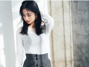肩部分が少し後ろに落ちたデザインで、大人っぽくフェミニンな印象です。