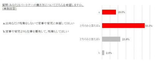 b「家事や育児よりも仕事を優先して、残業もしてほしい」?