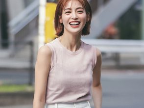 合わせるトップスは、去年からトレンド入りしている、体にぴったり沿ったリブニット。襟が深めに開いているボートネックなデザインは、ボトムを選ばない優秀な1枚。色違いで押さえておきたいほどヘビロテの予感!