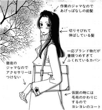 「働きマン」(安野モヨコ/講談社)は、週刊誌編集部で働く 28 歳独身女性の松方弘子が、社内での奮闘や恋愛 などに日夜奮闘する「編集者」の物語。 新人編集者の田中が「仕事しかない人生だったとそんなふうに思って死ぬのはごめん」という考えに対して、 松方は全く逆の考えをキッパリと話す。