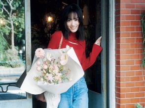 デニムでカジュアルにまとめた日は、レディなパンプスやショルダーバッグを合わせて女性らしさも忘れずに。