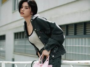 レースアップが施された深めのVカットは、肌見せが多い分デニムでカジュアルダウンすると、ぐんと今っぽくなります。