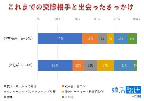 株式会社IBJが未婚男女20〜48歳に「学生時代の部活と現在の恋愛観」について調査。皆さんはお付き合いした男性は「体育会系男子」と「文化系男子」、どちらが多かったですか?