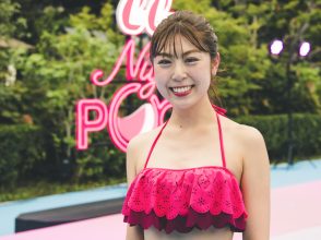 おかげ様で、連日大好評の今年のテーマは「ナイトサーカス」。サーカス小屋をイメージしたフォトスポットの前で、今季の最新水着事情もわかっちゃうスナップをしてきました!