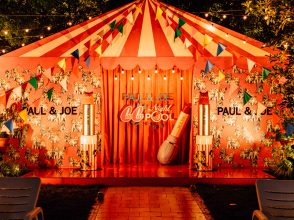 おかげ様で、連日大好評の今年のテーマは「ナイトサーカス」。サーカス小屋をイメージしたフォトスポットの前で、今季の最新水着事情もわかっちゃうスナップをしてきました!