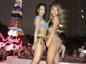 かわいい写真を撮るために来るナイトプール。水着もそれぞれおしゃれ!