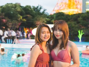かわいい写真を撮るために来るナイトプール。水着もそれぞれおしゃれ!