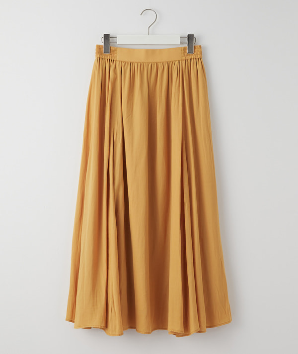 真夏のトロピカルな果実をイメージさせるオレンジのミモレ丈スカートは、