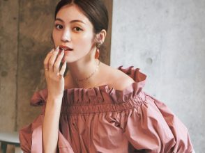 襟ぐりが大きく開いたトップスを着る時は、ヘアはアップにまとめて小顔効果を狙いましょう♡