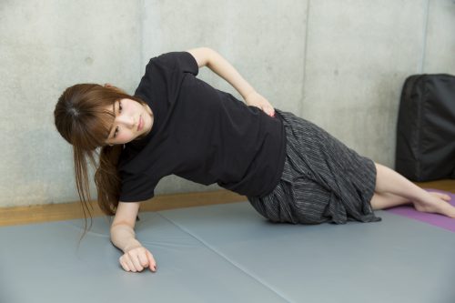 何度か繰り返し行ったあと、両サイドの腹筋のトレーニングへ。