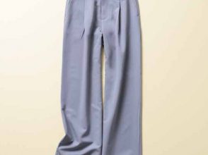 トップスが甘めなので、ボトムにはこの秋注目のボルドーのパンツをセレクト。