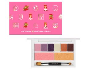 心がウキウキするホリデー気分を盛り上げてくれそうな、遊び心たっぷりのパレットには、アイシャドウ6色+チーク2色にダブルエンドのブラシもセット。「グローオン」(チーク)に型押しされているのは、スーパーマリオブラザーズでおなじみのキャラクターたち。