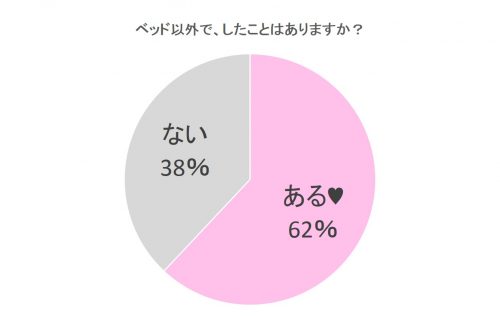 「ある」と回答したのは62%で、半数以上の女子が経験ありのようです♡ ちなみに、回答が多かった場所が「お風呂場」、「ソファ」など。ほかにも、「森の中」「車の中」などツワモノもいました! では、女子たちの「やってみたい場所」を妄想と共にご紹介します♡