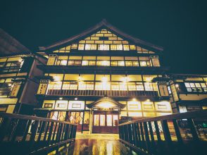 ガス灯のあかりが木造の宿に映え、ノスタルジックな雰囲気で人気です。銀山川沿いを散策すると、趣ある温泉宿が立ち並び、大正時代にスリップしたような気分……。冬には雪が積もり、より幻想的な雰囲気になるのでおすすめ。