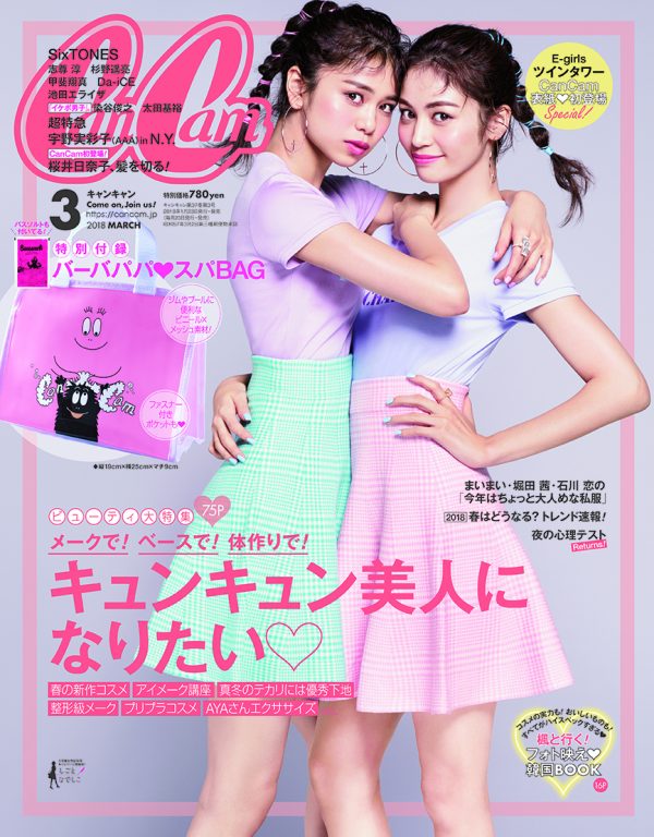 CanCam2018年3月号は1月23日(火)発売、表紙はE-girlsの楓×佐藤晴美=ツインタワー!