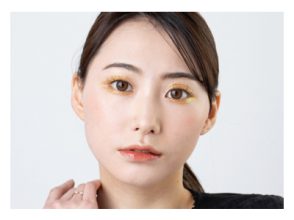 (10)Cの左の2色をミックスし、涙袋の影を作る。仕上げに、お好みのつけまつげやマスカラをつけたら完成!
