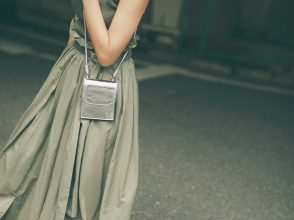コーデの差し色にチョイスしたのは、鮮やかなネオンピンクのボディバッグ。しつこくなりすぎてしまわないように、素材違いのピンクで揃えてコーデの奥行きをアップさせて。