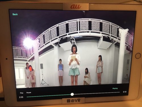 実際に音のVRを画面で体験した飯窪春菜さんは「この映像では誰でもセンターになれますし、私たちはメンバーが13人いるので、少なくとも13回はひとりひとりにズームして楽しめます。操作も簡単でわかりやすくて、指2本あればできます!」とのこと。