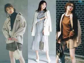 コントラストの強いモノトーンコーデは、ときにハードな印象になりがち。やわらかなベージュと合わせることで女性らしくまろやかにまとまります。ボーダーの1色・ベージュをニットで拾えばコーデ全体のまとまりもUP!