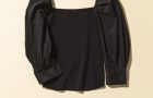 ボリューミーなパフ袖ブラウスはベーシックに使える淡いベージュをまず1枚♡ ボトムにゆとりのある黒のフレアパンツを合わせて、程モードでありながらいい感じに力の抜けた装いに。辛口な黒パンツと赤バッグが品よく整えてくれるので大人っぽくまとまります。