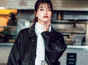 Rirandture(リランドチュール)のブルゾンは、辛すぎないまろやかなカーキや、ダボっとしすぎない絶妙なサイジングなど、女っぽい要素がたくさん詰まっているので、ボトムがパンツでもカジュアルになりすぎずGOOD。