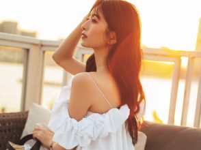 適度な肌見せが色っぽかわいいオフショル風トップスは、夏に向けて取り入れたアイテムのひとつ♡ ぴたニット×ふんわりスカートの、フィット&フレアシルエットでスタイルアップも意識。黒とラベンダーを組み合わせて、品よくお嬢さんな印象に。