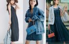 【8】爽やかなブルーワンピをブラウンカーデで引き締めて
