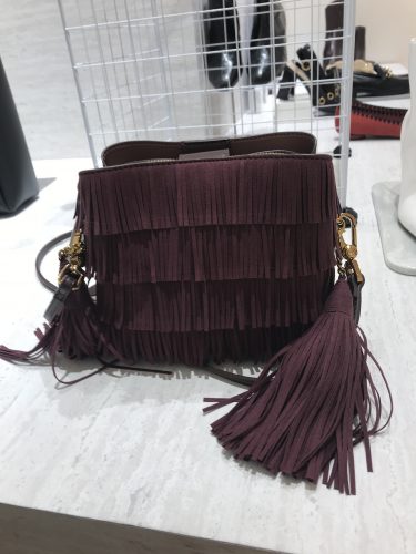 こちらのショルダーバッグはトレンドのフリンジと小ぶりのサイズがかわいい! 中にはコスメなどちょっとした小物が入るジッパー付きの間仕切りがついているので収納もばっちり。