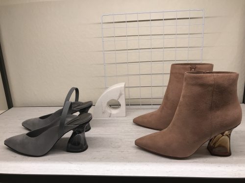 ミルキーなカラーのスエードにちゅるんとしたクリアヒールがたまらなくかわいい♡ ブーツでも明るい色味とクリアヒールなので秋の初めから取り入れやすいんです。