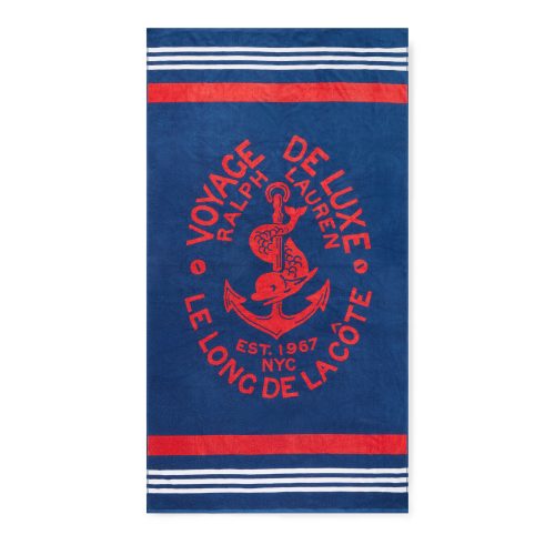 フランス リビエラへの船旅のビンテージポスターにインスパイアされたビーチタオル。ラルフ ローレンらしい遊び心のある錨マークがポイントになっています。