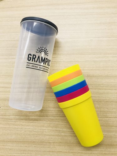 こちらはカトラリーとお揃いのプラスチックコップ。ピクニックだけじゃなく、お部屋でも使いたくなるかわいいカラー。