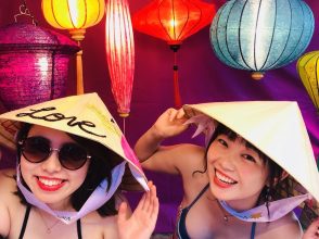 かぶってみるとめっちゃかわいいですよね! ベトナムのランタン装飾が楽しめるのも今日まで!