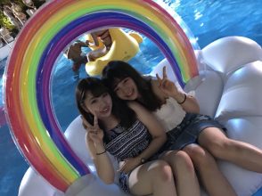 新しいフロートも投入しているので、プールも大盛り上がり。シェルやユニコーンのフロートは定番ですが、意外なジェニックスポットもあるので、探してみてください。この夏一度は来ないと損ですよ♪