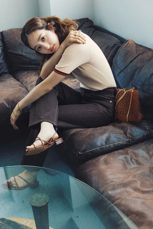 今シーズンも大活躍のワイドパンツは、涼しげなリネン素材で季節感を意識。ベージュのリネンパンツならカジュアルになりすぎず、きちんと感も叶うのでオススメです。クセのないベージュは、合わせるトップスを選ばないのも魅力のひとつ。一枚でサマになる大ぶりのフリル袖ブラウスを合わせれば、美人度もアップします! ワイドな裾からは、華奢なストラップ靴で女っぽい足元をアピールするのが◎。トップスを主役にしたいから、アクセやヘアはナチュラルに。