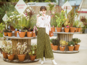柔らかな素材の風合いがムードを高めてくれる、オリジナルプリントのブラウスとスカートのセットアップもこの秋のトレンド顔。ブラウスはふんわりと立体的なシルエットを描くパフスリーブが女性らしい可憐な印象。袖裏についているボタンを留めれば、ギャザーが寄りまた違う雰囲気で着られます。スカートは細かく入ったタックがフレア感を強調。無地トップスを合わせるだけでも印象度高いスタイルになる、着回し力抜群アイテムです。
