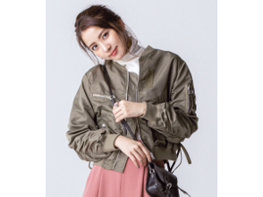 かわいげ白ワンピとメンズ風ブルゾンのギャップが魅力のカジュアルコーデ。レザー見えブルゾンは、やわらかなブラウンをきっちり着込まず緩くはおることで、リラクシー感のあるガーリーコーデにまとまります。スニーカーでハズす着こなしも今っぽさ◎。