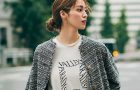 ロングジャケット×ワイドパンツのテイストMIXコーデ。新鮮な半袖ツイードジャケットはオーバーサイズを選びつつ、ゆるパンツとTシャツを合わせてカジュアルダウン。ロングジャケットは前を留めればワンピースとしても着られます。