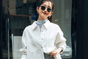 【9】ゆるっとシャツもウエストラインで色っぽく