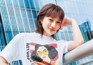 【11】古着っぽいプリントTシャツで甘チュールスカートを旬顔に