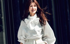 ブラウス一枚でさらりとキメたい一日には、顔周りを盛り上げるリボン結びで存在感UP。白のなじませコーデで感度高くまとめつつ、ポケット付きパンツでハズしを加えると、きれいめだけで終わらないハイセンスな着こなしが完成します。