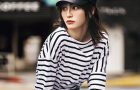 ブルーのストライプシャツに黒のロールアップパンツをチョイスして、爽やな印象に。スクエアトウのぺたんこ靴で足首をすっきり魅せれば、バランスも女っぽさも理想的。