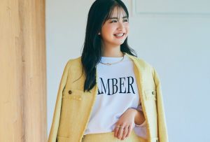 かっちりきれいめなツイードセットアップも、レモンイエロー&ミニスカを選ぶことで快活なオーラを発揮! ヘルシーなロゴスエットも手伝って、親しみやすい抜け感コーデがつくれます。