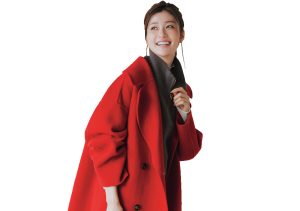 存在感たっぷりな赤コートは、ネイビーベースの小花柄スカートなど、ヴィンテージムードが漂うアイテムと合わせつつ、肩の力を抜いてはおるのが◎。ジップニットやローヒールブーツでラフさを上乗せして、華やかなコートスタイルを攻略!