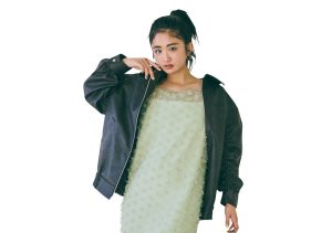 〝彼っぽアウター〟として先シーズンから人気のレザーブルゾンは、今季もまだまだ注目株。立体的なフラワーモチーフ×チュール素材など、あえて甘盛りディテールのワンピと合わせるギャップが、洒落見えのワザ!
