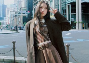 【7】メンズっぽジャケットはプリーツミニで今どきプレッピーに