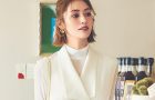絶妙な肌の透け感を演出してくれるシアーワンピとクールなジレのセットアップコーデ。真っ白のワントーンも、シュッとしたⅠライン&ウエストマークで美スタイルが叶います。小物はベージュでオール白の儚さをキープ。