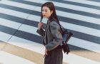 プリーツスカート×ニーハイソックス×ローファーのトラッドな雰囲気にレザー風ブルゾンを合わせて、オーセンティックなスタイルに辛口な変化球を。深みのあるブラウングラデで、ミニスカがグッと大人な表情に。