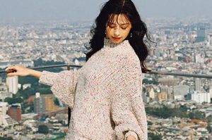 トレンドのミニスカコーデは、赤のケーブルニットをスパイスにして秋冬仕様に。足元は、ブーツもいいけどソックス×パンプスにすることで韓国っぽさが演出できます。締め色の黒レザージャケットもコーデの完成度を高める秘訣。