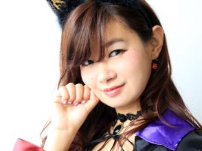 こちらも野村彩也子さん同様、この日のために買ったのは100円ショップの魔女風の帽子のみ、服は私服のワンピースの簡単ハロウィン!